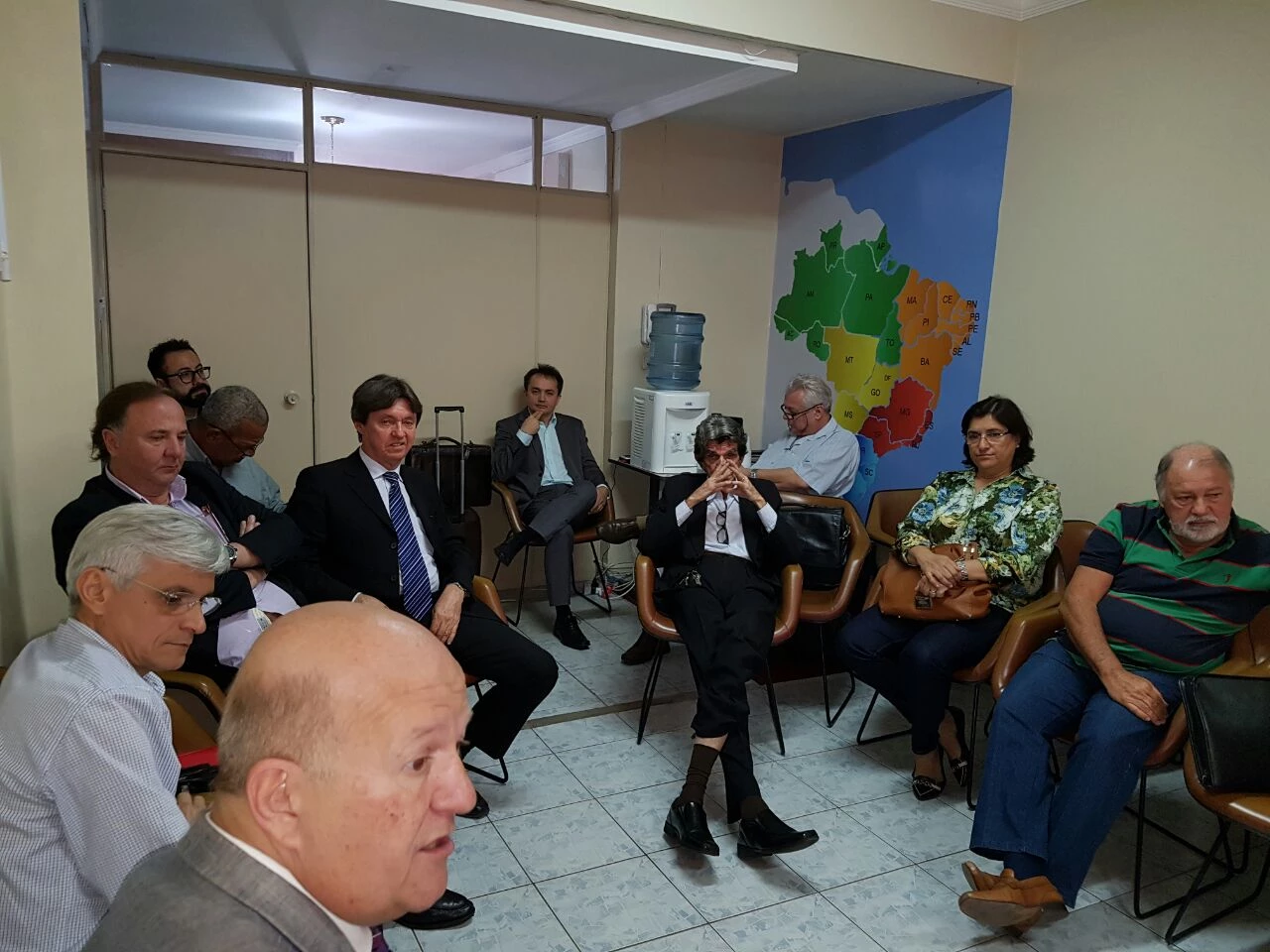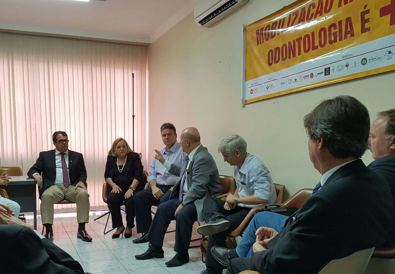 Na manhã desta quarta-feira, 19 de outubro 2016 a diretoria da FNO recebeu em sua sede Brasília - DF, a diretoria do CFO - Conselho Federal de Odontologia, Juliano do Vale presidente, Ermensson Luiz Jorge vice presidente, Eimar Lopes de Oliveira secretário geral, Rogério Dubosselard Zimmermann tesoureiro na mesa de trabalho fora debatidos vários assuntos pertinentes à Classe Odontológica o presidente Dr. Juliano do Vale fez uma explanação inicial de alguns projetos do CFO para os próximos anos, assim como a mudança da sede para Brasília.
