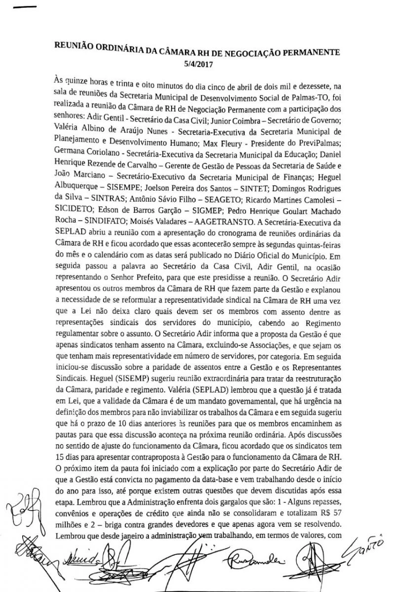O secretários municipais de Palmas Adir Gentil e Junior Coimbra apresentaram na tarde desta quarta-feira, 5 de abril de 2017, na Câmara de RH do município uma proposta pouco apetitosa para os Sindicatos presentes no Palácio Buriti. O índice 6,58% já tinha sido anunciado na Câmara de Vereadores semana passada, o prefeito Amastha pronunciou dizendo que pagaria a data-base 2017.