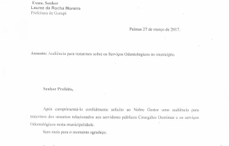 AUDIÊNCIA PARA TRATARMOS SOBRE OS SERVIÇOS ODONTOLÓGICOS NO MUNICÍPIO
