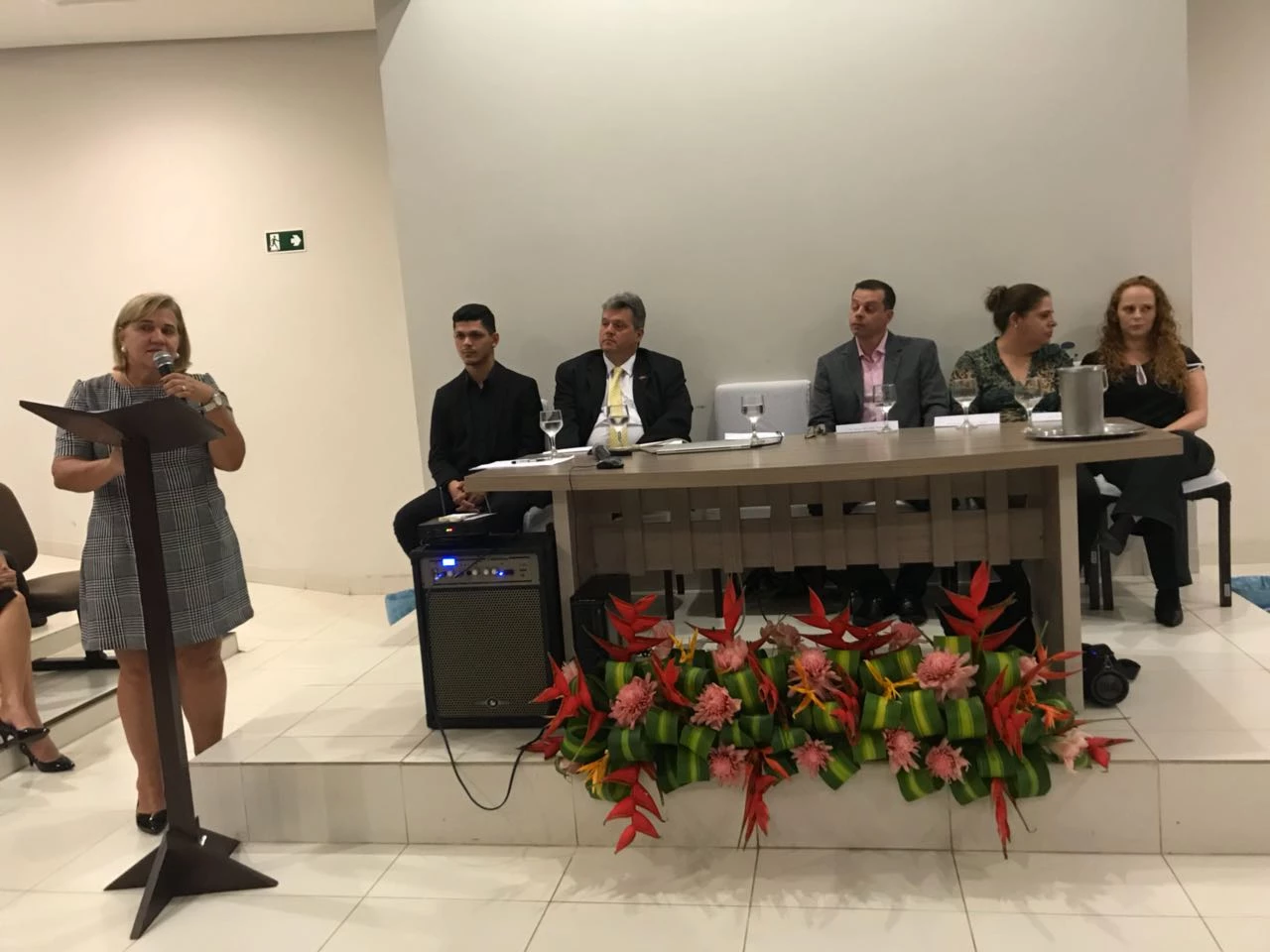Compuseram a mesa diretiva da solenidade de abertura dos eventos a Dra Ângela Maria Mota, diretora geral da FACIT-TO; a presidente Docente da JONT, Dra Luciana Alves Mara Negrão; o presidente Discente da JONT, Pedro Henrique da Luz; o secretário do CRO-TO, Dr. Marcos Alves Dias Pimentel; Profa. Dra. Myrella Lessio Castro; e o presidente do Sindicato dos Cirurgiões Dentistas do Tocantins, Dr. Ricardo Camolesi.