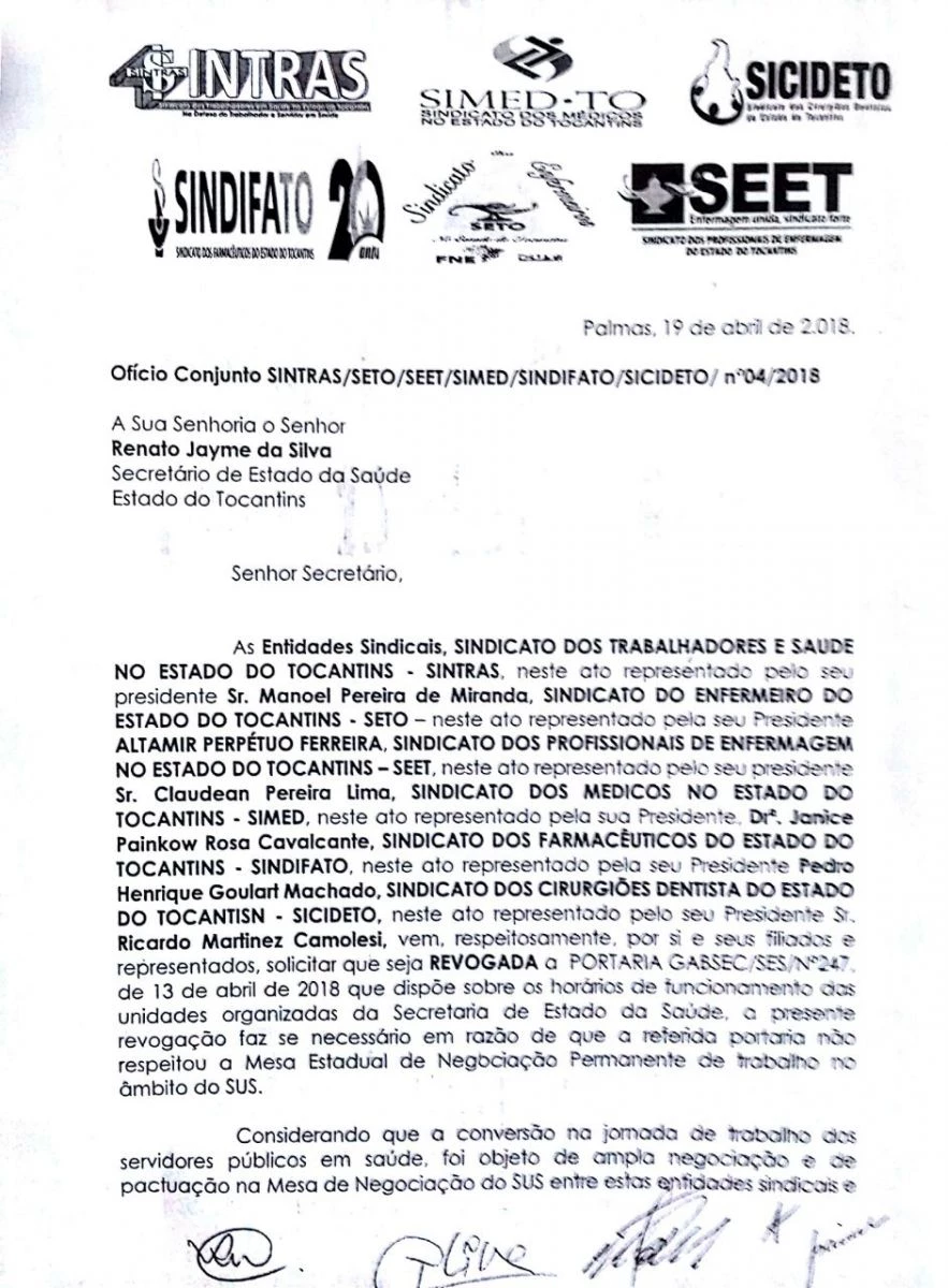 "Trabalhamos forte esses dois dias, estamos de olhos bem abertos e confiantes que o novo secretário não cometerá essa injustiça com os servidores públicos estaduais concursados, pois é público e notório que este pessoal é que carrega nas costas a saúde no Tocantins"