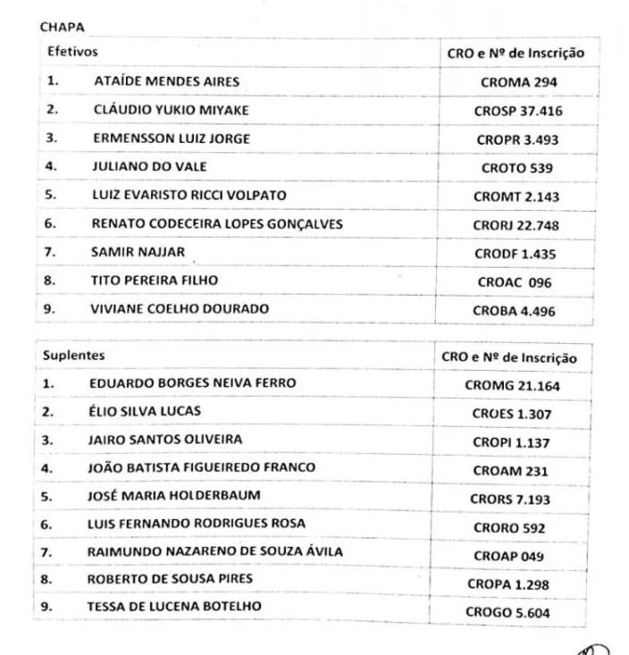 Na tarde desta segunda-feira, 4 de junho de 2018, Dr. Juliano do Vale foi reeleito presidente do Conselho Federal de Odontologia - CFO, esteve presente Dr. Ricardo Martinez Camolesi o representante da chapa 1, a eleição realizada no plenário do Conselho Federal de Odontologia, em Brasília, a chapa 1 obteve um resultado expressivo de 20 votos favoráveis, com 5 votos nulos e 2 Estados faltantes. A maioria optou pela gestão de Juliano do Vale, pelas mudanças já realizadas no Conselho, um gestor competente de compromisso com a Odontologia e com o grupo de Cirurgiões Dentistas que o acompanham; outras questões estão por vir, mas com uma proposta diferente para Odontologia Nacional todos os CRO's só tem a ganhar.