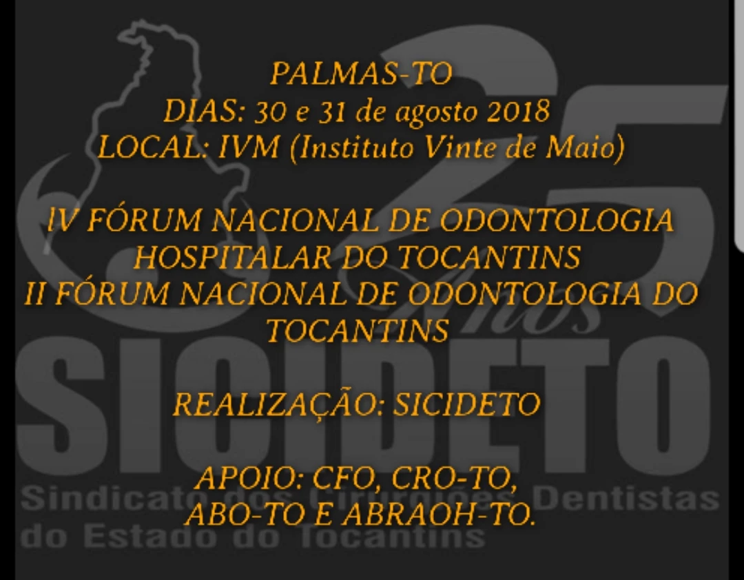II FÓRUM NACIONAL DE ODONTOLOGIA DO TOCANTINS E IV FÓRUM NACIONAL DE ODONTOLOGIA HOSPITALAR DO TOCANTINS