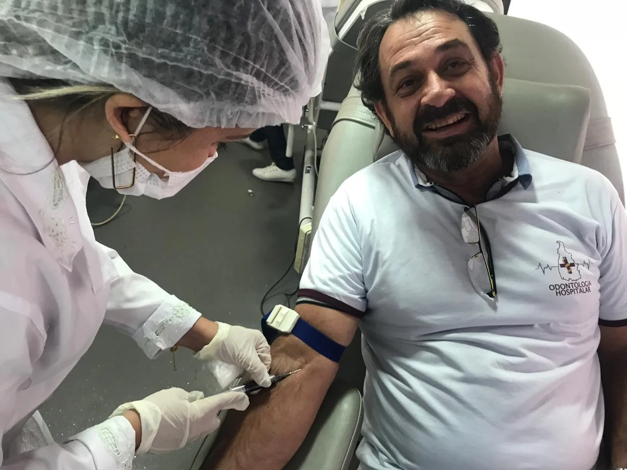 Dr Giancarlo Quagliarello fez a doação de sangue para motivar aos Colegas Cirurgiões Dentistas, mostrando a importância deste ato.