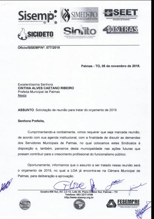 SINDICATOS OFICIALIZAM PEDIDO DE AUDIÊNCIA COM A PREFEITA
