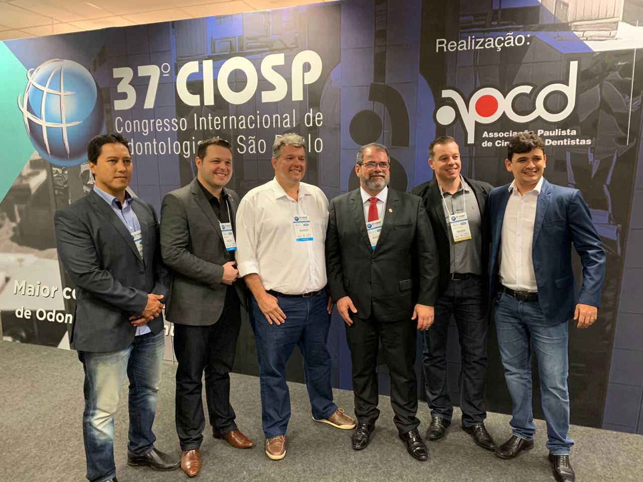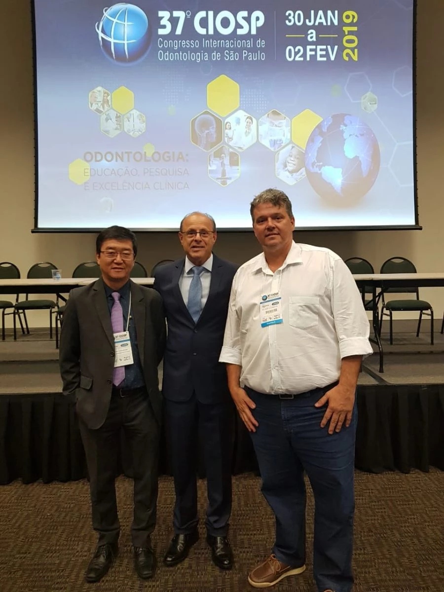 Ao lado do presidente do SICIDETO Dr Ricardo Martinez Camolesi o presidente da APCD Wilson Cheddiek e Dr Cláudio Miaki presidente do 37° CIOSP.