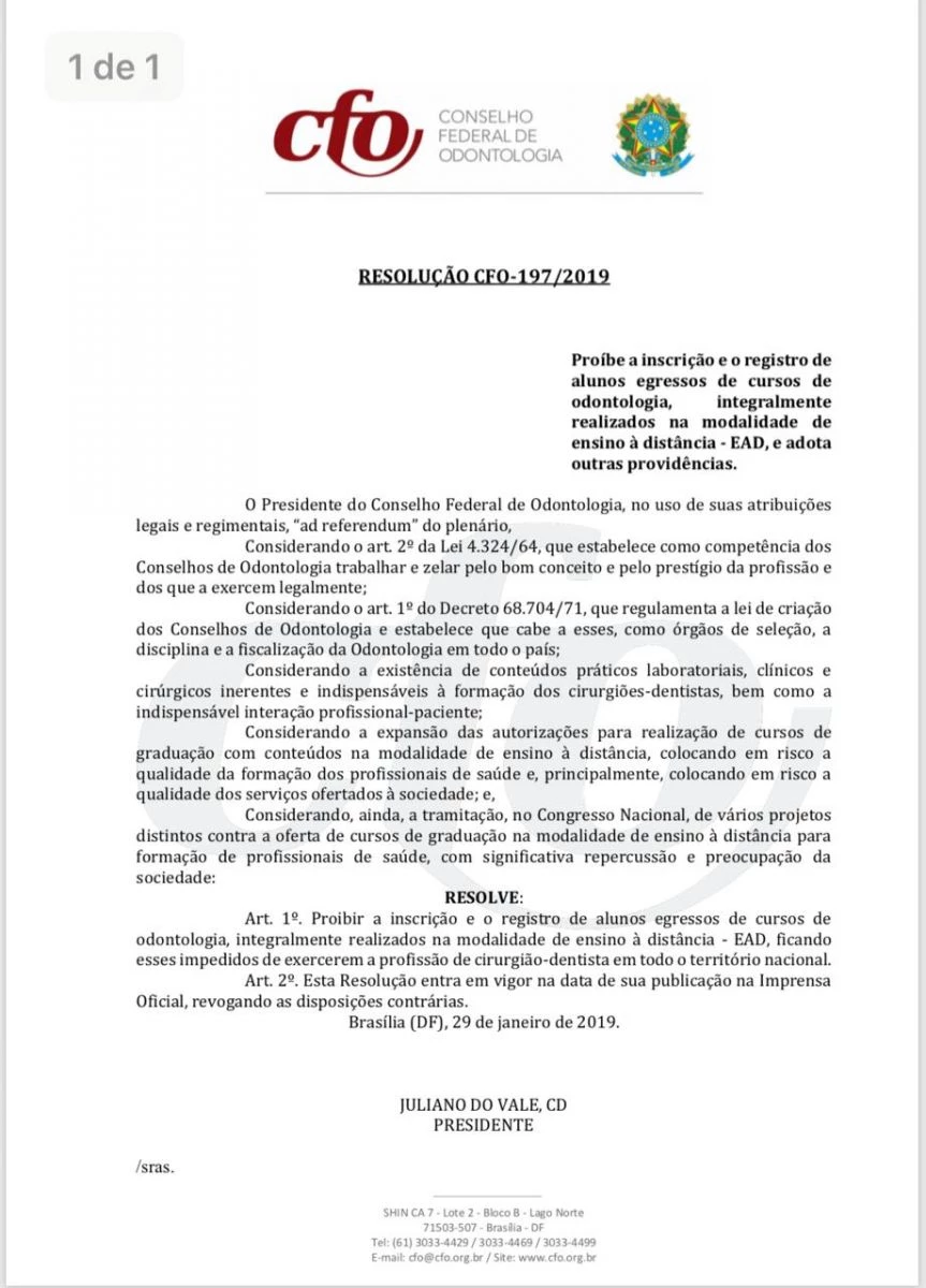 Na abertura do 37° CIOSP Congresso Internacional de Odontologia de São Paulo o presidente do CFO Dr Juliano do Vale apresenta as seguintes resoluções: