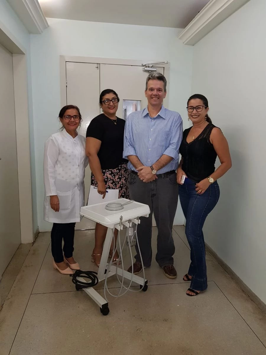 Dra. Rosângela Maria Coelho Barros CD - Núcleo de Vigilância Hospitalar - CCIH, Dra. Maria da Penha de Sousa e Silva Bandeira - Diretora Geral, Dra. Marina Duarte Celestino coordenadora do NEP receberam das mãos do presidente do SICIDETO Dr. Ricardo Camolesi, o equipamento doado; para a OH mais um passo importante no atendimento do SUS, valorizando e mostrando aos Gestores que ainda não tem um olhar focado na saúde bucal que os Cirurgiões Dentistas em Hospitais fazem a diferença, um grande trabalho, salvando várias vidas diariamente.