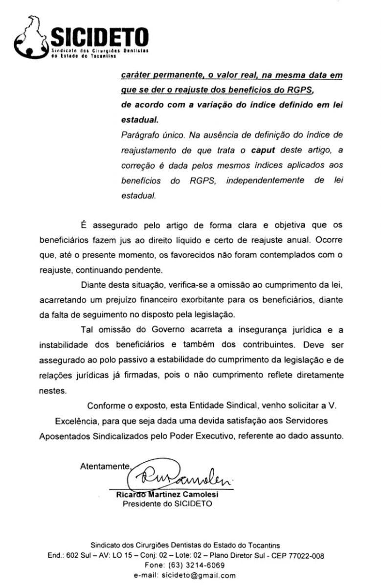 Os aposentados e pensionistas do IGEPREV desde muito tempo são injustiçados com o não recebimento dos reajustes, " nós entendemos ser um direito não benefício, portanto lutamos para que o erro seja reparado; nosso Departamento Jurídico do SICIDETO nos orienta diuturnamente para que sempre alertas estejamos" pacífica Dr. Ricardo, todos os documentos protocolados são colocados em nosso site, de forma a prestarmos contas aos nossos filiados do trabalho realizado.