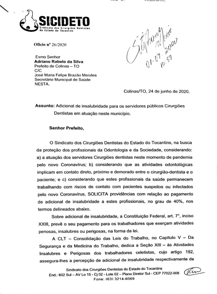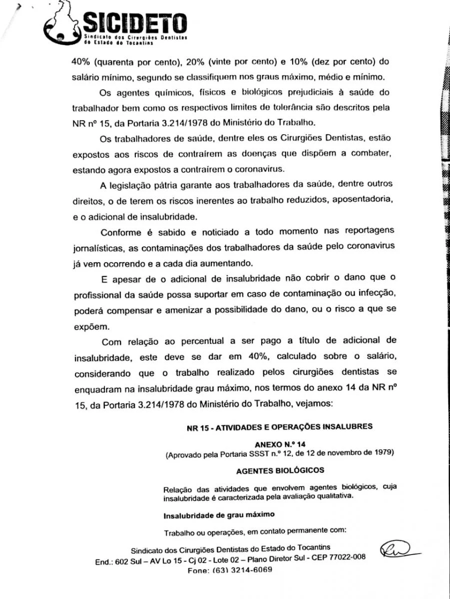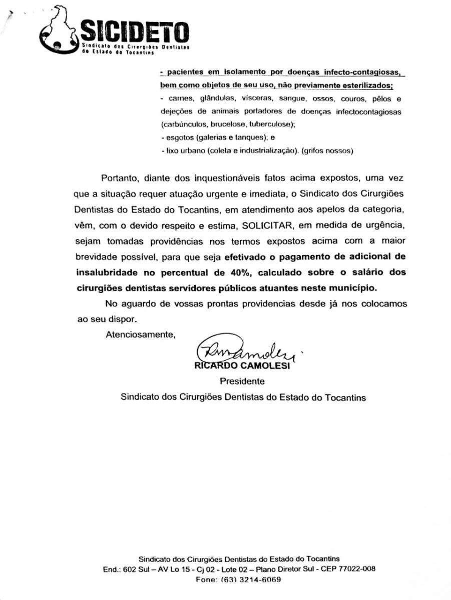 Dentre os assuntos abordados a insalubridade dos servidores municipais foi a pauta mais debatida na pequena reunião, existindo uma preocupação constante do SICIDETO com o pagamento da insalubridade para toda a categoria indiscriminadamente; em alguns municípios os Cirurgiões dentistas não são contemplados por este adicional, "sabemos das falhas e da falta deste adicional em muitos locais, sempre afirmo que o SICIDETO trabalha com demandas apresentadas pelos nossos filiados, assim como ocorreu aqui em Colinas que aprtir de agora iremos correr atrás do direito á insalubridade para nossa categoria" disse Dr. Ricardo.