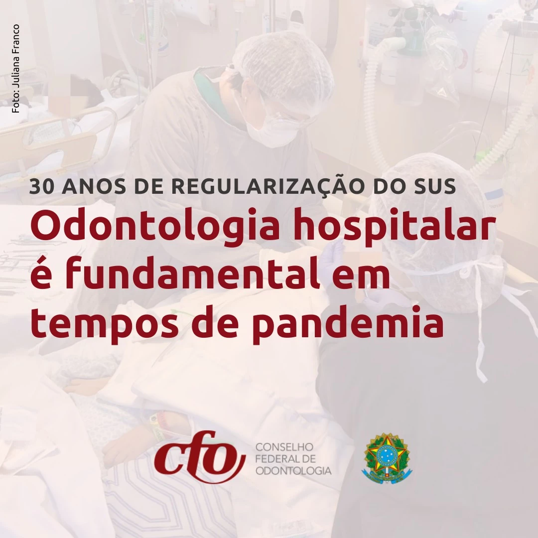 Neste 19 de setembro, em que o Sistema Único de Saúde completa 30 anos de regularização (Lei 8080/1990), o Conselho Federal de Odontologia (CFO) presta homenagem a todos os Cirurgiões-Dentistas que trabalham com excelência na assistência em saúde bucal da rede pública. Em tempos de pandemia, o CFO evidencia, em especial, a importância da Odontologia Hospitalar no cuidado à vida de pacientes hospitalizados com o novo coronavírus.