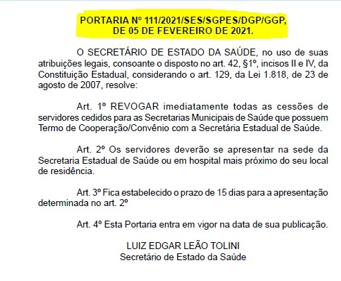 Veja a Portaria: