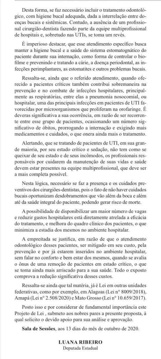 Ainda no gabinete da Deputada Luana Ribeiro o presidente do SICIDETO recebeu um grande notícia para a Classe, a Deputada esta trabalhando um anteprojeto que trata da Odontologia Hospitalar amplamente, para apresentar ao Governador Carlesse nos próximos dias e ser levado á Assembleia Legislativa, solucionando de vez muitas questões referentes a situação dos Cirurgiões-dentistas servidores públicos estaduais.