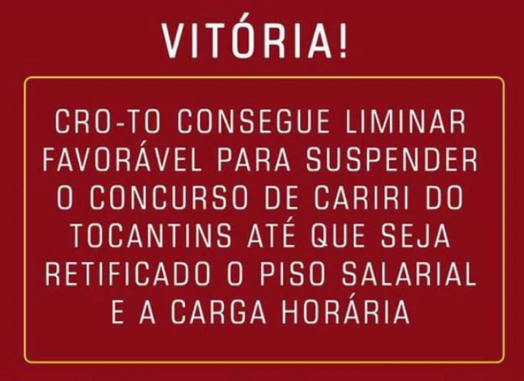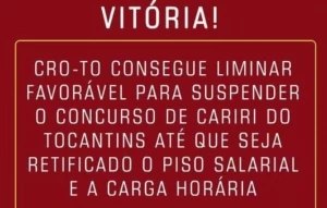 Na manhã desta sexta-feira, o concurso de Cariri do Tocantins para os cargos odontólogos foi suspenso até que haja retificação do edital para cumprir com o piso salarial. Isso ocorreu após o Conselho Regional de Odontologia do Tocantins em suas atribuições entrou com ação civil pública para que seja cumprido o piso salarial do cirurgião-dentista contra o município de Cariri do Tocantins. Isto porque o concurso não cumpria com a Lei 3.999/61 que prevê 3 salários mínimos para 20h/semanais trabalhadas. O CRO-TO visa a valorização do profissional e cobra o cumprimento das leis federais. Não sendo possível prover cargos públicos e remunerar uma categoria profissional sem observar a legislação em vigor.