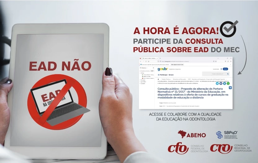 Esta consulta é o passo seguinte do Ministério da Educação após a divulgação do relatório apresentado pelo GT EaD, instituído pelo MEC para avaliar essa modalidade de ensino para cursos de graduação em Odontologia, Direito, Enfermagem e Psicologia. A análise, que além do CFO, contou com a colaboração da Associação Brasileira de Ensino Odontológico (ABENO) e da Sociedade Brasileira de Pesquisa Odontológica (SBPqO), apresentou embasamento técnico e científico demonstrando a inviabilidade da Educação à Distância na Odontologia.