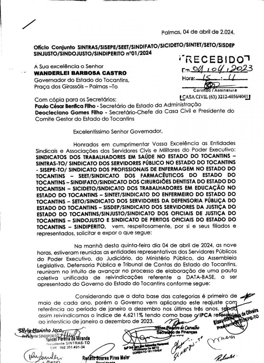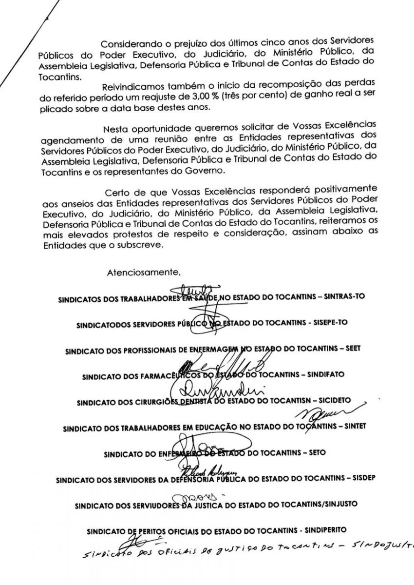 Todas as tratativas serão apresentadas e um ofício conjunto para solicitação de uma renião com o Governador e sua equipe já protocolado.