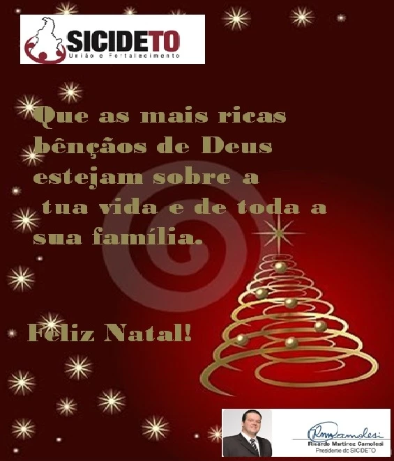 Desejamos a todos os filiados do SICIDETO um Natal repleto de Felicidades, de Amor e Paz.