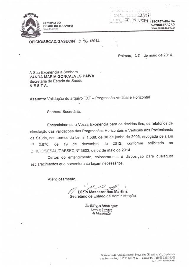 Clique aqui para ler na íntegra o ofício encaminhado pela Secretaria de Estado da Administração à Secretaria de Estado da Saúde.