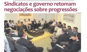 Os Sindicatos e o Governo voltaram a se reunir nesta segunda-feira, 23. Desta vez o assunto foi a situação dos funcionários públicos que não se incluem no quadro dos beneficiários das progressões que já chegaram ao teto da tabela, e sendo assim, não teriam mais condições de ascender na carreira. Sem uma definição, um novo encontro ficou marcado para o próximo dia 11 de maio.