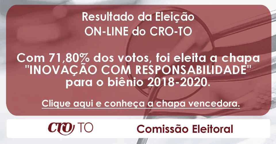 Na última quarta-feira, 21, foi realizada a eleição, para renovação da diretoria do Conselho Regional de Odontologia do Tocantins, que irá conduzir a entidade no biênio compreendido entre 14/07/2018 até 13/07/2020.