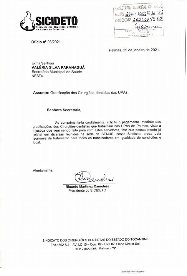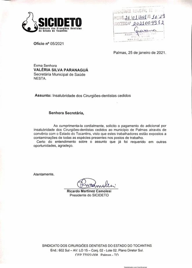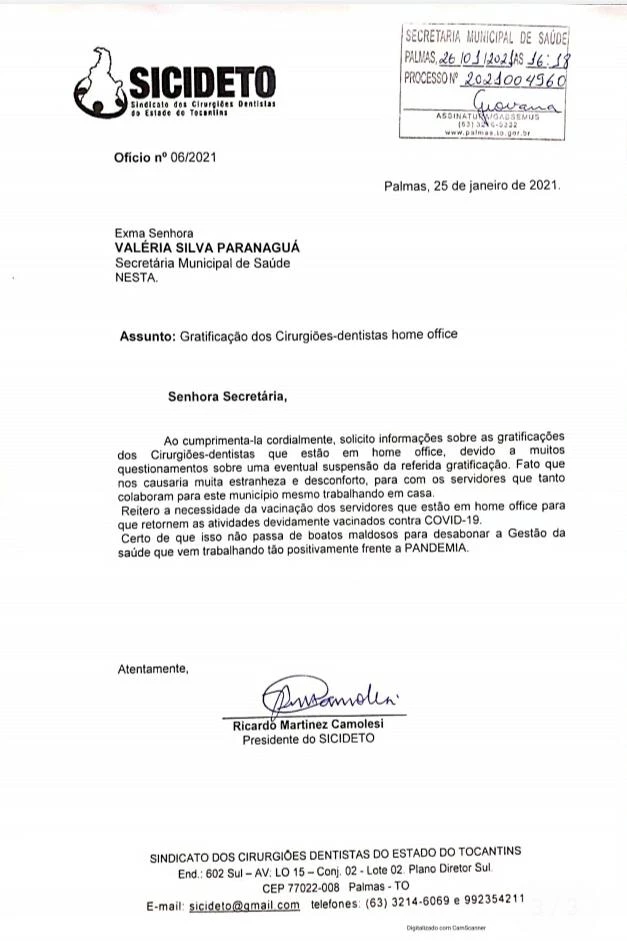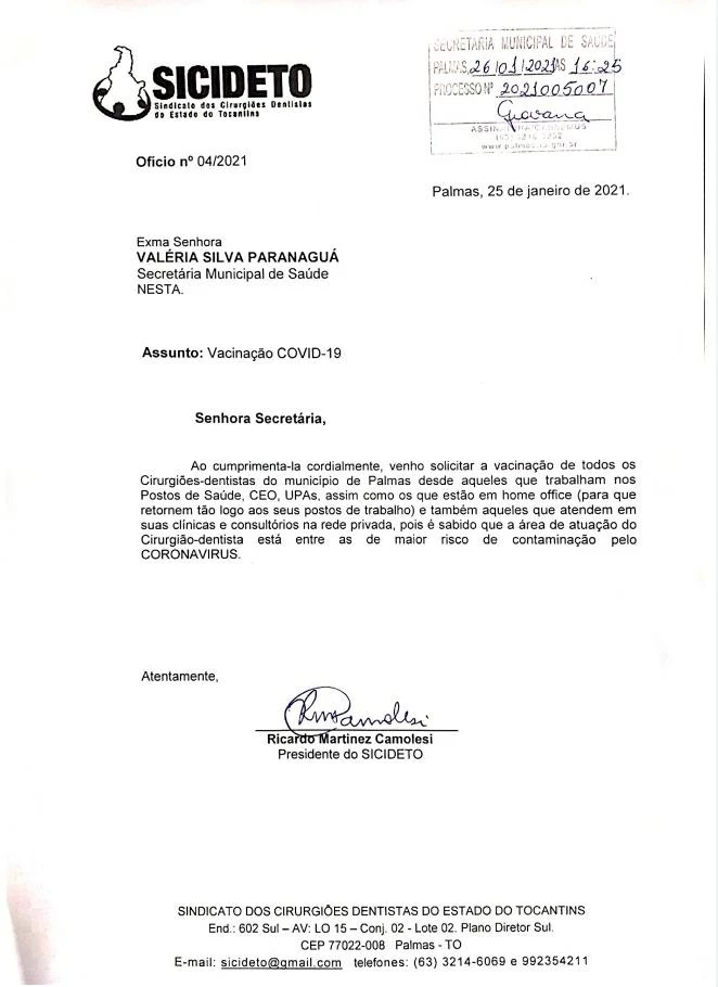 Preocupado com a situação dos Cirurgiões-dentistas servidores públicos municipais de Palmas o SICIDETO através de seu presidente protocolou ofícios na SEMUS - Palmas buscando respostas para as demandas que vem se arrastando desde o ano passado, além das questões relacionadas a PANDEMIA.